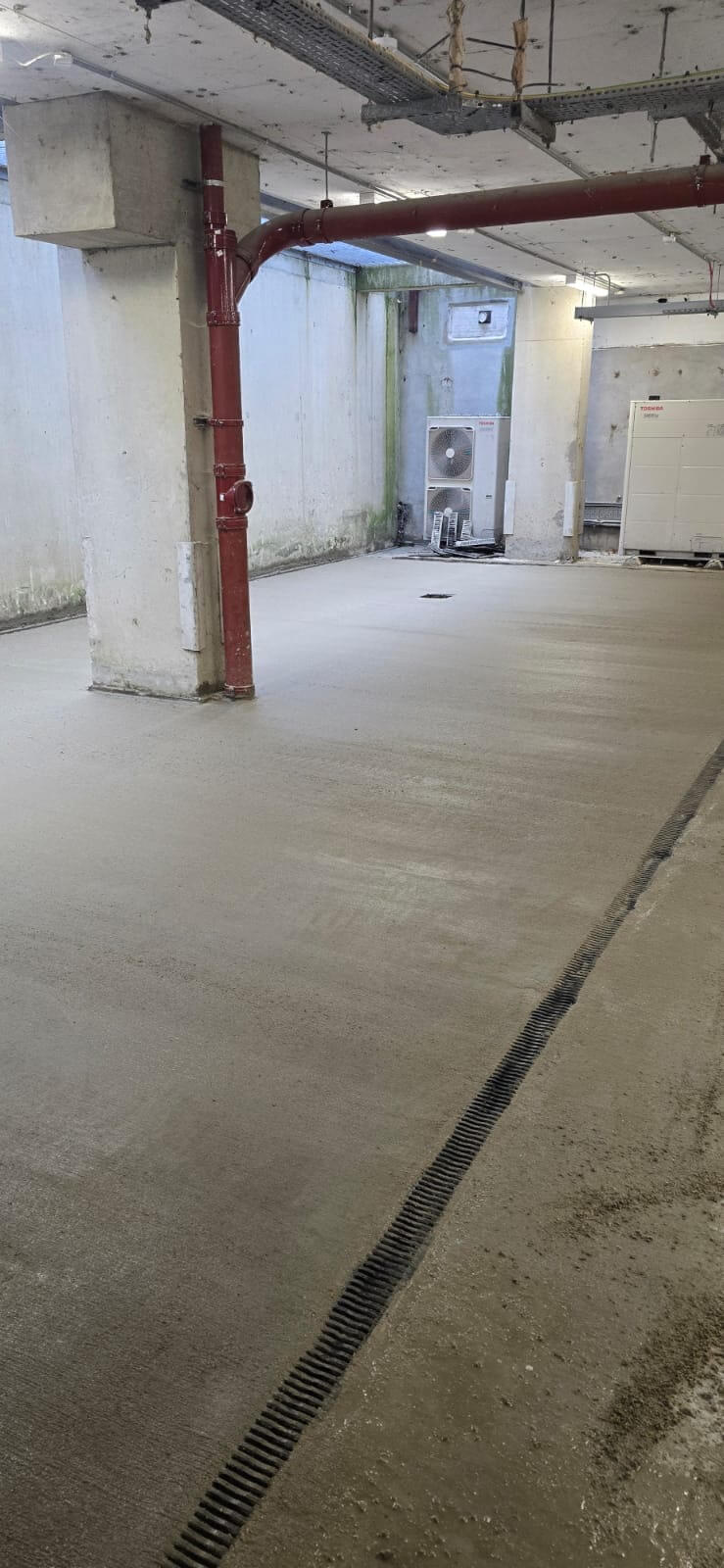 Removal and replacement of a failed underground car park concrete slab suffering from water ingress.